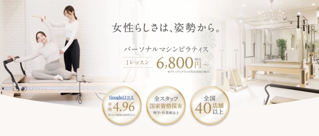 ・パーソナルマシンピラティス専門スタジオで、マンツーマン指導に特化しています。